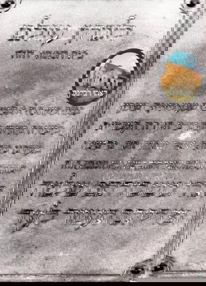 שלט הנצחה על יסוד בית הכנסת, באדיבות הצלם מיכה בר-עם הי"ו